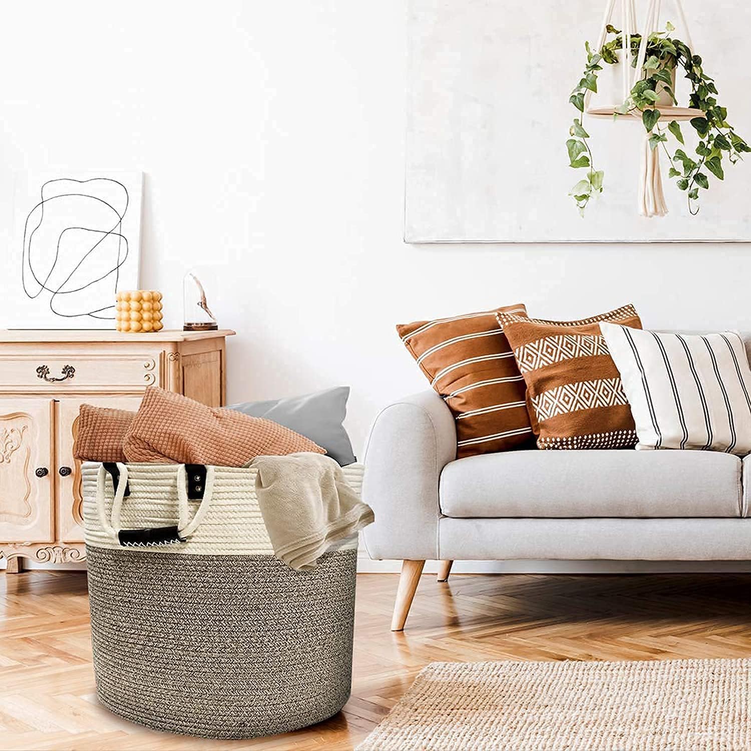 Slowly warm your home with more layers to make it more snug and cozy. Change the pillows and rugs. Shop your home and re-arrange art and houseplants. Ambient lighting around the room will transform the mood to a relaxed, inviting space. Put a woven basket of throws and extra pillows in the living room.
